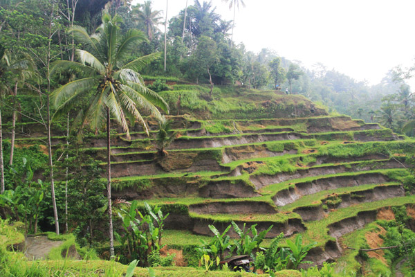 Találunk egy kávézót, meginnánk végre egy híres kopi luwakot, de sajnos náluk pont nincs, választjuk a sima kávét és hozzá egy mennyei ananászdzsemes palacsintát. Nem megyünk haza, ez eldőlt! Míg megesszük, az eső is eláll, elindulunk a lépcsős rizsföldekre. Belépő nincs, ám az úton sokszor megállítanak a helyiek, hogy adjunk némi pénzt. Egy idő után zavaróvá válik, ha minden sarkon adnánk, üres tárcával végeznénk a mai kalandot.