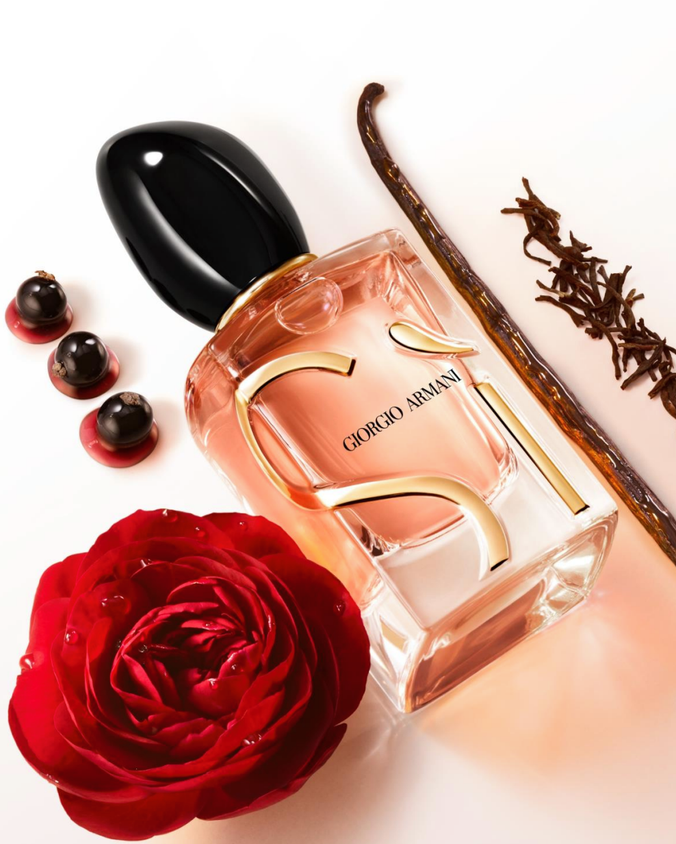 A SÌ EAU DE PARFUM INTENSE lédús és zamatos feketeribizli-nektárral nyit, amely természetesen üde hatást kelt, és még jobban kiemelni az illatjegy gyümölcsös jellegét. A feketeribizli a damaszkuszi rózsa aromatikus virágos frissességével és a füstös és fűszeres fekete teával keveredve az alapjegyekben megjelenő vanília jegyeket teszi teljessé.