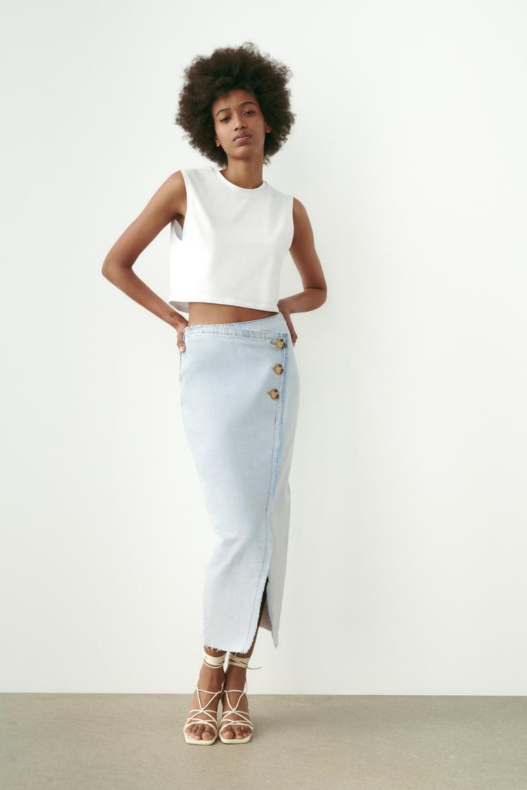 Ezeket a nagyon trendi midi hosszúságú szoknyát rendkívül sokféle felsőhöz lehet párosítani: a szatén anyagú blúzoktól kezdve, a len anyagú ingeken át egészen a "buggyos" ujjú darabokig szinte mindenhez remekül illik ez a farmerszoknya, ami különböző lábbelikkel - így sokpántos magassarkú szandálokkal és a sportos, virágmintás sneakerekkel - is tökéletesen néz ki.