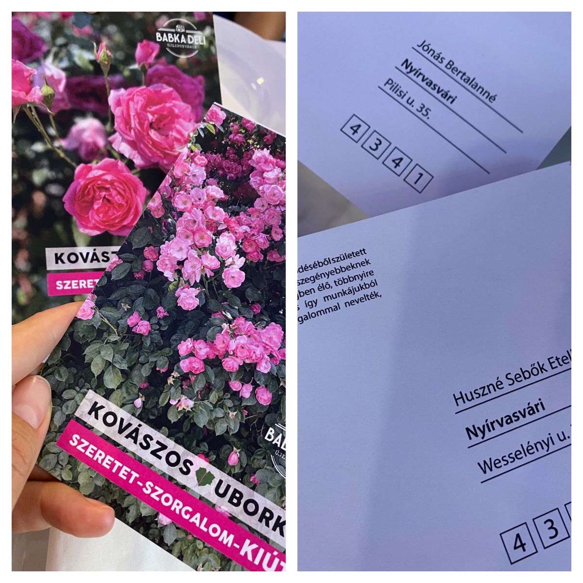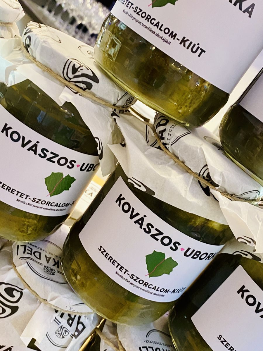 Az asztalon képeslapok Nyírvasváriban élő asszonyoknak címezve, akiknek megköszönhetjük az uborkatermést, amiből a vacsoránk készült. "Ez a kovászos uborka a Kiút program és a Babka Deli együttműködéséből született és a program termelőinek uborkájából készült.