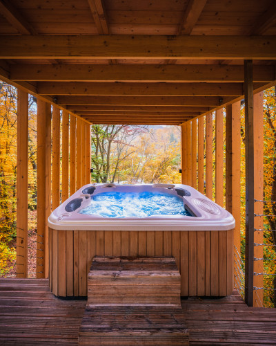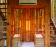 A szálláshely berendezését tekintve ez még csak a kezdet, hiszen minden házban található egy teakonyha, klíma, HD TV, minibár, helyi borok és persze a legjobb, a privát Jacuzzi. Nincs is jobb érzés, mint a házból kilépni a teraszra, beszívni a friss levegőt és beülni a meleg pezsgőfürdőbe, legyen kint napsütés, vagy hóesés. Egy nagy előnye a Treehousesnak, hogy a faházak négy évszakra lettek tervezve, tehát nem csak nyáron élvezhető a helyszín, hanem egy hideg őszi este a színes lombok között akár még hangulatosabb élményt tud nyújtani. Egy nagy séta után a hűvös levegőben, irány a finn szauna, mely a kis tóra néz és nem csak lelkünknek, de az egészségünknek egyaránt jót teszünk.