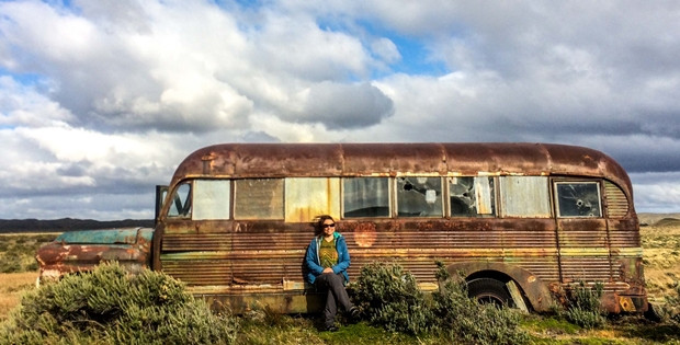 Elhagyatott busz Tűzföldön.