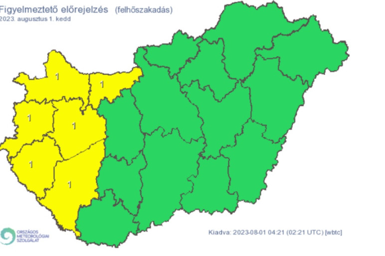 Ezekre a megyékre adott ki figyelmeztetést az Országos Meteorológiai Szolgálat felhőszakadás miatt.