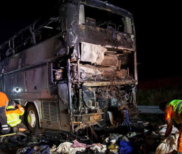 Hétfő éjjel kigyulladt egy emeletes turistabusz...